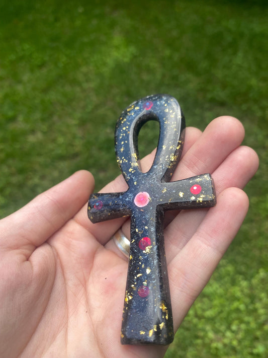 Ankh, Orgone. Made w Elite Shungite and Hematite. 24ct Gold. Powerful. EMF Protection. 5G Protection.