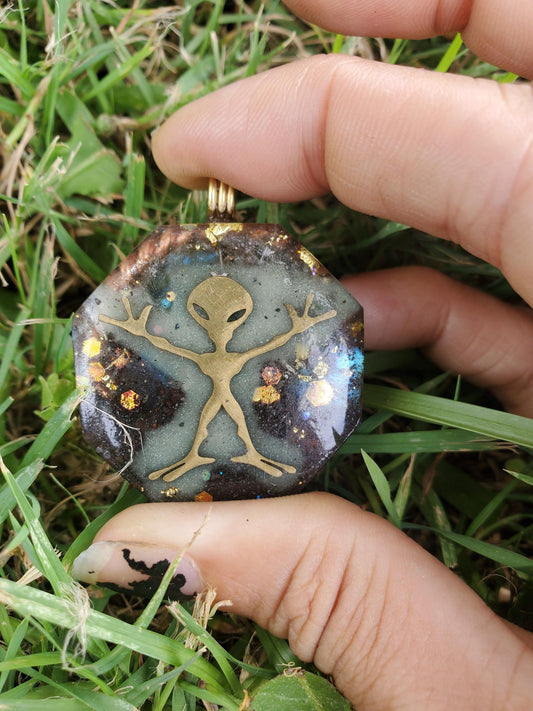Alien Orgone Pendant Necklace. Made w Elite Shungite, Gold Sheen Obsidian, 24ct Gold and Tensor Ring. Powerful. EMF Protection.