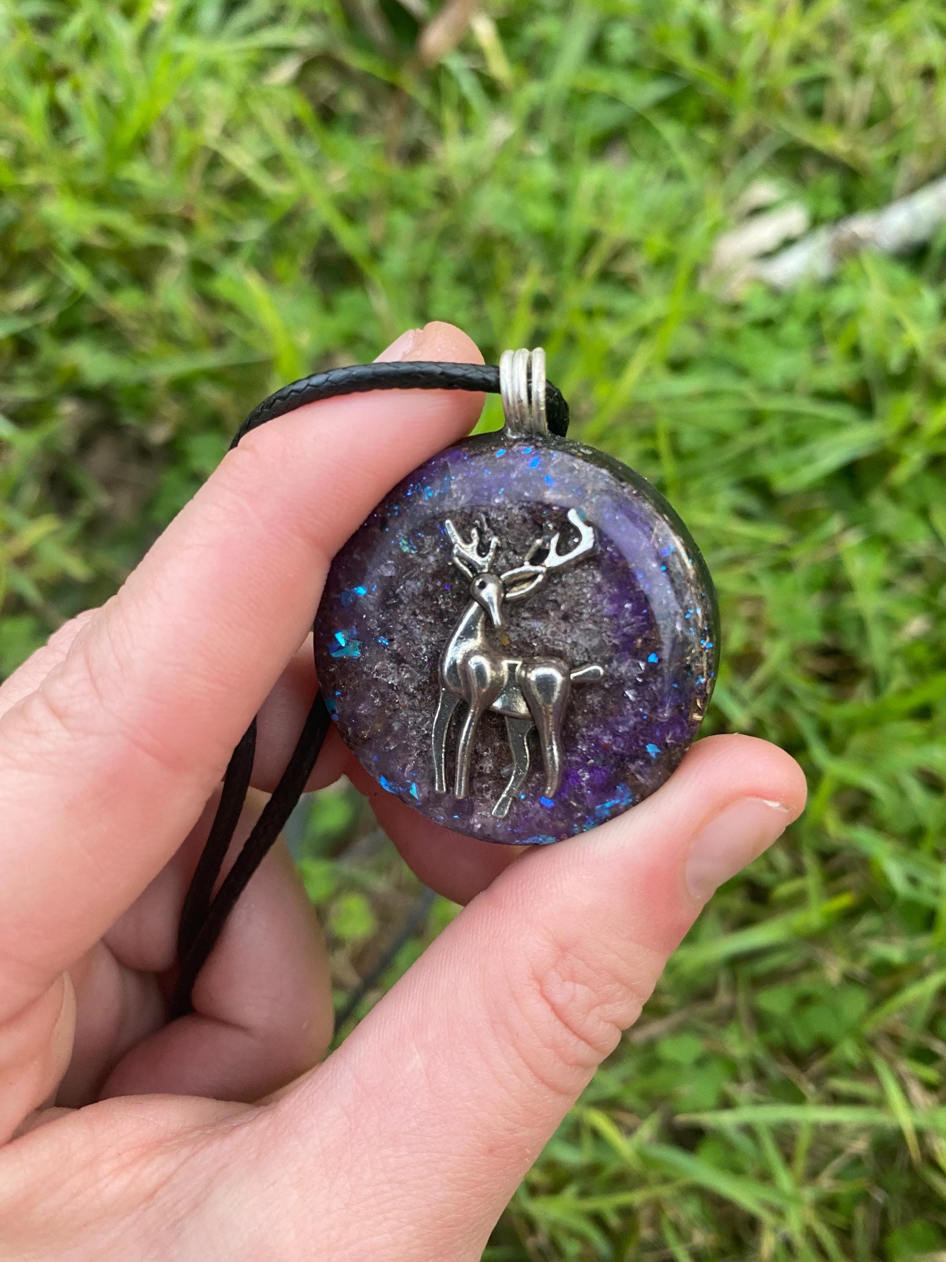 Deer. Orgonite Pendant. Made with Amethyst & Tensor Ring.