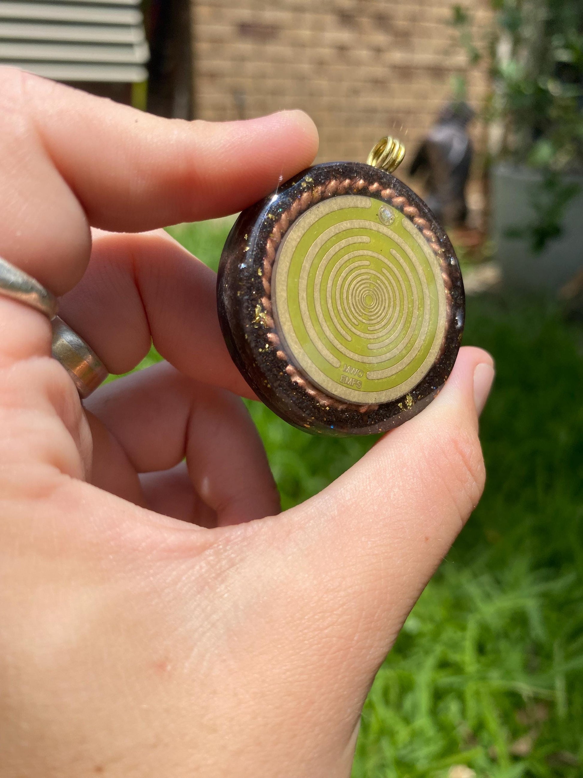 MWO Wave EMF protection symbol. Orgone Pendant. Made with Lodestone and Double Tensor Ring.